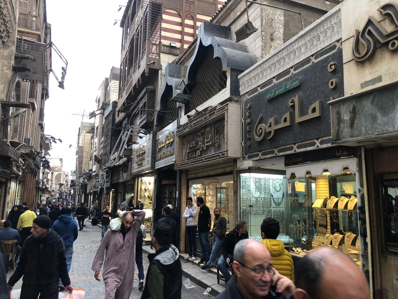The main street of the goldsmiths begins at the entrance of Al-Moez Li-Din Allah Street, on the side of Al-Azhar Street, on the opposite side of Al-Ghouriya Market.